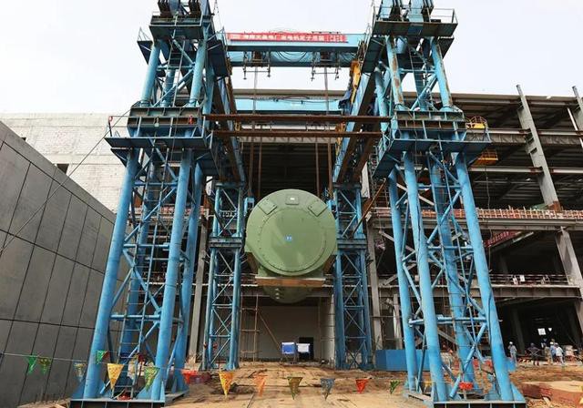 ▲文昌燃气电厂进行发电机定子吊装